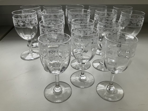 Betreed de elegantie van het begin van de 20e eeuw met deze prachtige set van 16 Baccarat Chablis-glazen, vervaardigd tussen 1900 en 1906. Hoewel deze glazen niet gesigneerd zijn, belichamen ze de tijdloze kunstzinnigheid en verfijning die kenmerkend zijn voor Baccarats befaamde vakmanschap.