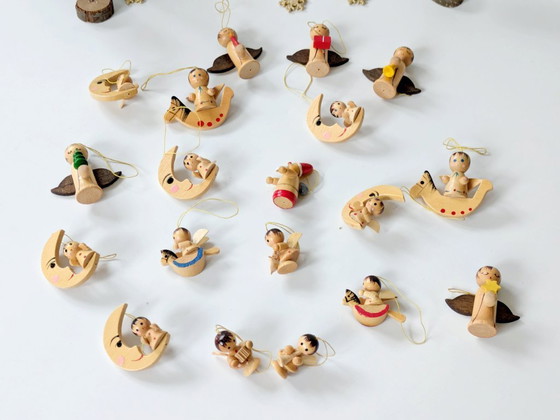 19 x Midcentury houten kerstversieringen | Handbeschilderd, Erzebirge, Duitsland