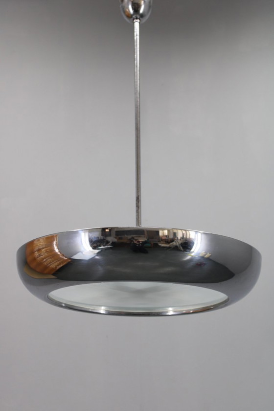 1930 Bauhaus / Functionalist Verchroomde Kroonluchter "UFO" van Josef Hurka voor Napako, Tsjecho-Slowakije