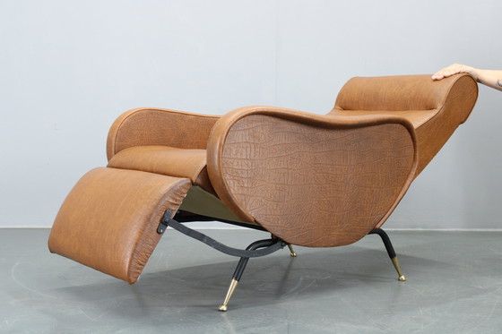 1950 Marco Zanuso Liggende 'Lady' Loungestoel in kunstleer, Italië