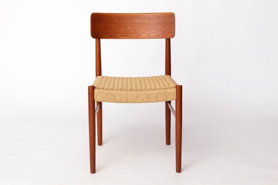 Het stevige massief teakhouten frame is zorgvuldig gerestaureerd en opnieuw bekleed met authentiek Deens papierdraad vlechtwerk, een combinatie van tijdloos design en alledaagse functionaliteit.