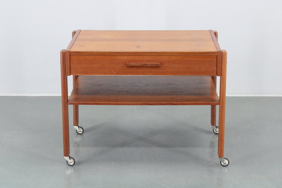 1960S Deens teakhouten naaikarretje of bijzettafeltje