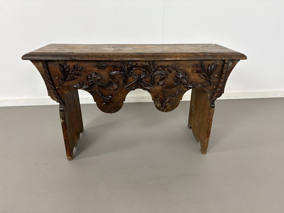Dit prachtige 19e-eeuwse antieke bestee- en beddenbankje is een schitterend voorbeeld van vakmanschap uit vervlogen tijden. Gemaakt van robuust eikenhout, straalt het een tijdloze elegantie uit die elke ruimte verrijkt. De gedetailleerde decoraties met motieven voegen een vleugje verfijning toe, waardoor het niet alleen functioneel maar ook een kunstwerk op zich is.