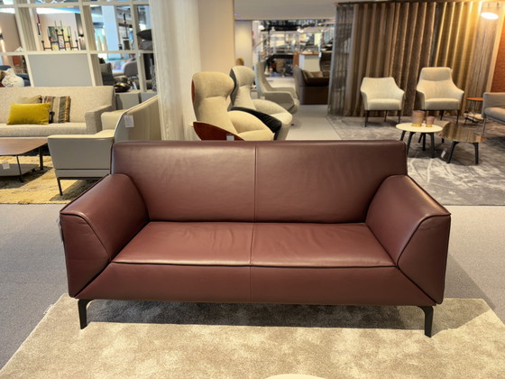 1x De Pacific Pure Sofa van het merk Jori. Met draaibare armleggers. Geheel gestoffeerd in leder Lapino kleur bordeaux. Poten, hoekpoot gelakt zwart.