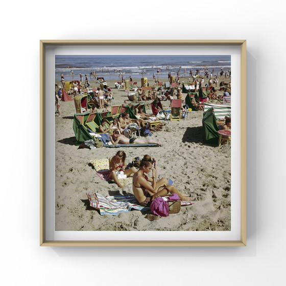 Deze bijzondere fine art print van fotograaf Wim van Rossum neemt je mee naar een zorgeloos moment op het strand van Zandvoort in 1962 – een tijd waarin vakantie nog simpel was en alles langzamer leek te gaan.