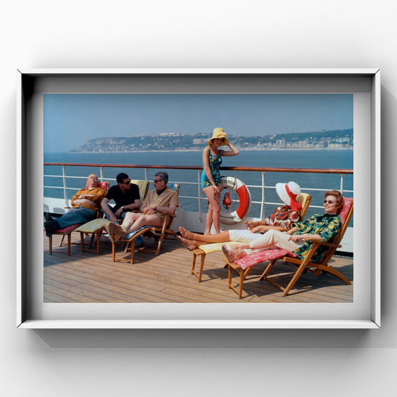 Stap even terug in de tijd naar een zwoele middag ergens halverwege de jaren ’60. Op het dek van de majestueuze SS Rotterdam genieten vakantiegangers – gekleed in stijlvolle zomerjurken en zonnehoeden – van de zon, de zilte lucht en het onbezorgde leven op zee. Deze fine art print in vroege analoge kleur vangt dat moment: een snapshot van de elegantie en rust van het mid-century cruisebestaan.