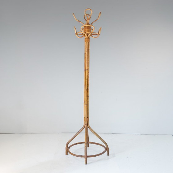 Een elegante, vrijstaande kapstok van bamboe en rotan, een toonbeeld van de Italiaanse stijl uit het midden van de 20e eeuw. Toegeschreven aan de Italiaanse designmeester Franco Albini, is dit item ontworpen en vervaardigd eind jaren 1950 - begin jaren 1960.