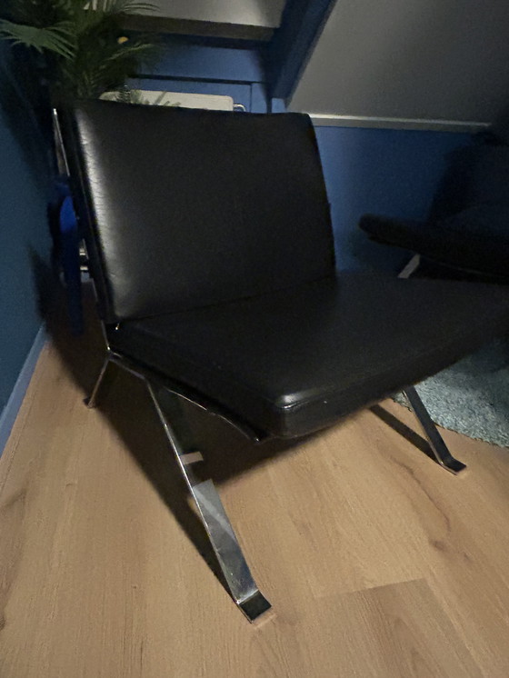 Ontspan in stijl met deze Girsberger Euro1600 relaxfauteuils. Perfect om een vleugje moderne elegantie toe te voegen aan elke kamer, met deze stoelen met strakke zwarte leren bekleding en stevige metalen poten. Of u nu lekker wegkruipt met een goed boek of gasten ontvangt, deze stoelen bieden zowel comfort als verfijning. Mis de kans niet om uw ruimte te verfraaien met deze chique loungestoelen!
