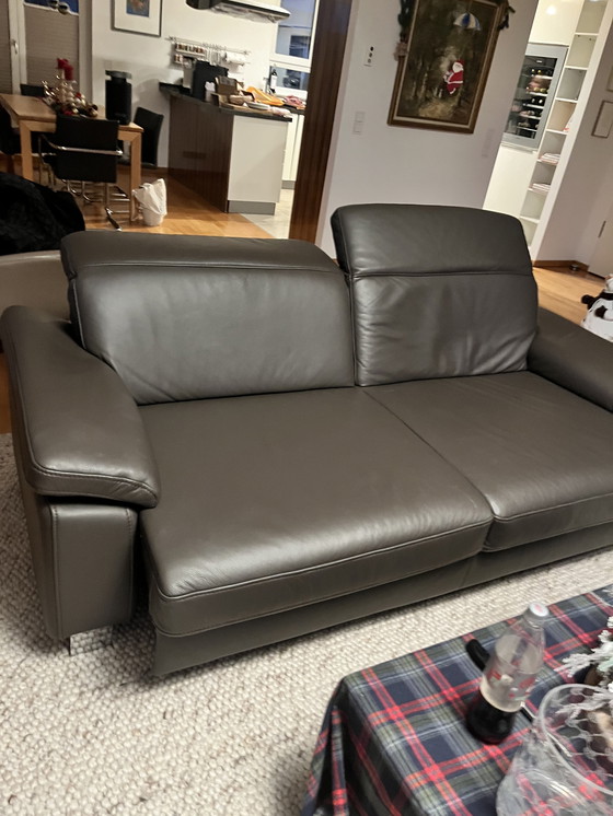 Twee hoogwaardige leren banken – Elektrisch verstelbaar (op batterijen), zo goed als nieuw