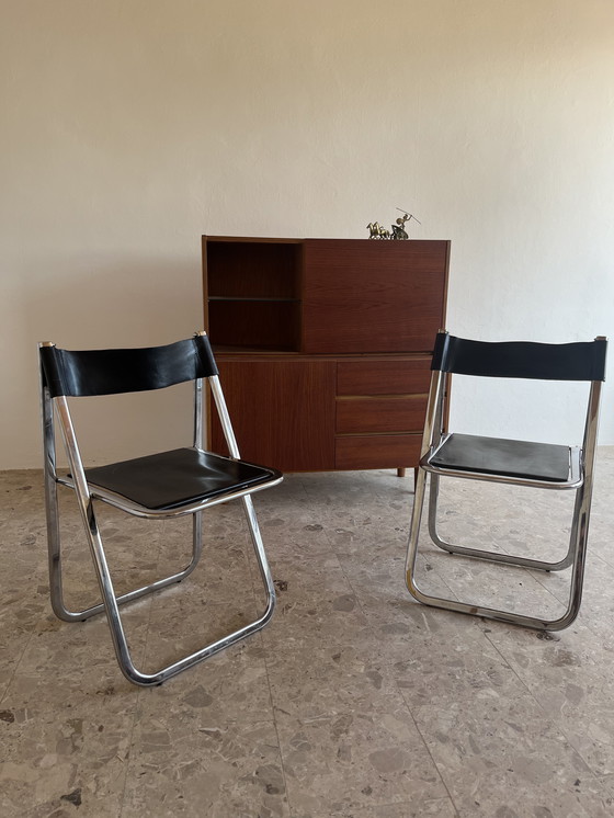 2 originele "Arrben Tamara jaren 70" klapstoelen van chroomleer, gemaakt in Italië!