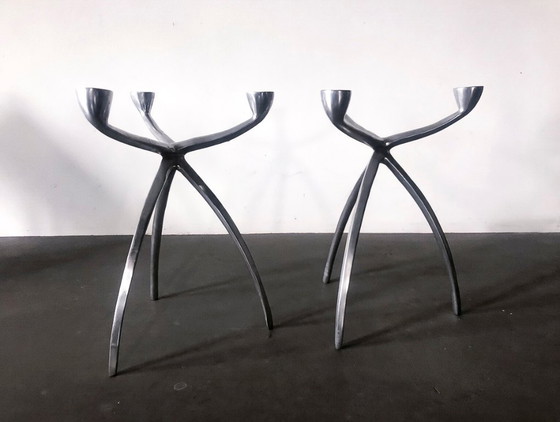 2 Space age Vintage Kandelaars jaren '70 van De Bijenkorf