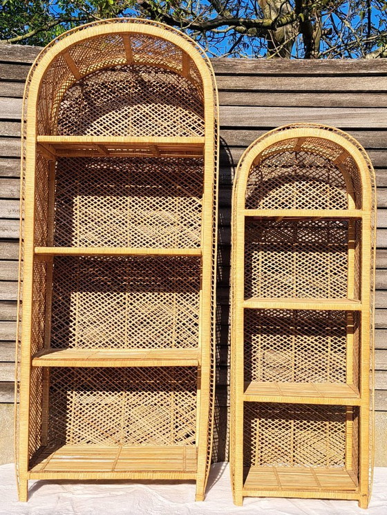 2 Vintage boekenplanken van bamboe en rotan, jaren 60