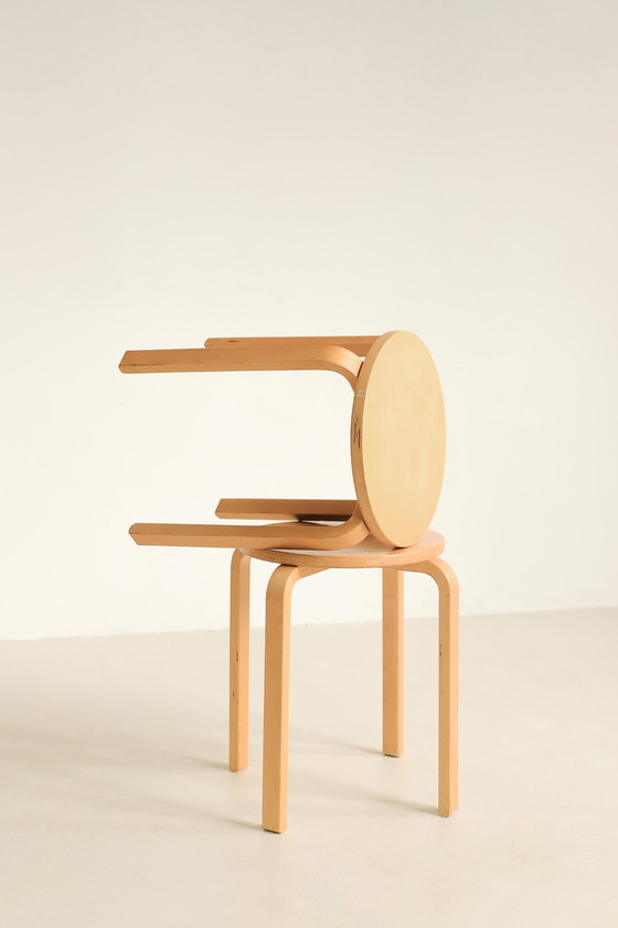 2 Vintage IKEA krukken uit de FROSTA serie geïnspireerd op het Alvar Aalto Model 60. Deze kruk is gemaakt van beukenhout fineer en inmiddels een designklassieker.