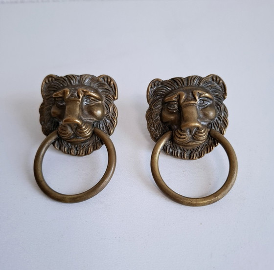 2 messing leeuwenkop lade trekker met de ring onder. De lade trekker of kast knopen zien er niet prachtig uit, maar ze zijn ook multifunctioneel. Gebruik ze als ladetrekker, kastknopen of voor kapstok in de hal voor. Een messing wandhaak staat ook leuk aan de muur in de woonkamer. Zoveel mogelijkheden! In perfecte staat met patina. Afmetingen: Lengte: 6,5 cm Breedte: 4,5cm Diepte 1,5
