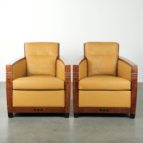 2 x Prachtige gele rundleren Art Deco design fauteuil van Schuitema, model Frank, uit de Decoforma serie