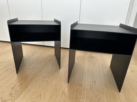2 zwart stalen mat gelakte nachttafels Robuust Amsterdam