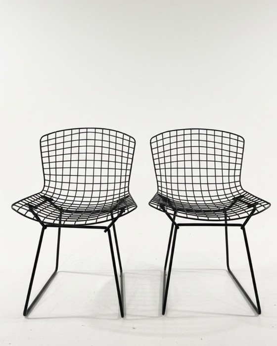 Ontdek de iconische Wire Chairs van Bertoia, ontworpen voor Knoll. Deze set van twee stoelen combineert een luchtige, open structuur met een tijdloos design dat perfect past in een modern interieur. De stoelen zijn vervaardigd uit hoogwaardig metaal en voorzien van comfortabele beige kussens, waardoor ze zowel stijlvol als functioneel zijn.
