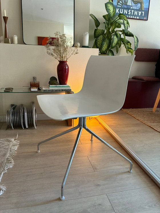 De Catifa design stoelen zijn ontworpen door Lievore Altherr Molina in 2004 en worden geproduceerd door Arper. Deze stoelen reeks heeft veel verschillende modellen, dit model bestaat uit een gepolijst aluminium draaibaar onderstel en een zitting van polypropyleen.