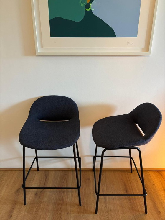 Deze stijlvolle en comfortabele barkrukken zijn een ontwerp van Khodi Feiz voor Artifort. De Beso (‘kus’) combineert elegantie en eenvoud in één vloeiende lijn en past zowel in huiselijke als zakelijke interieurs.