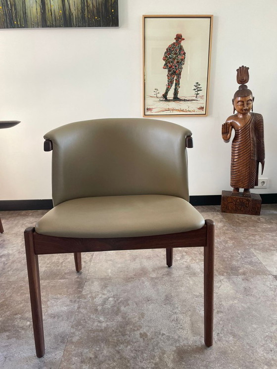 2x Crail eetstoel zonder armsteun walnoot leder mocca