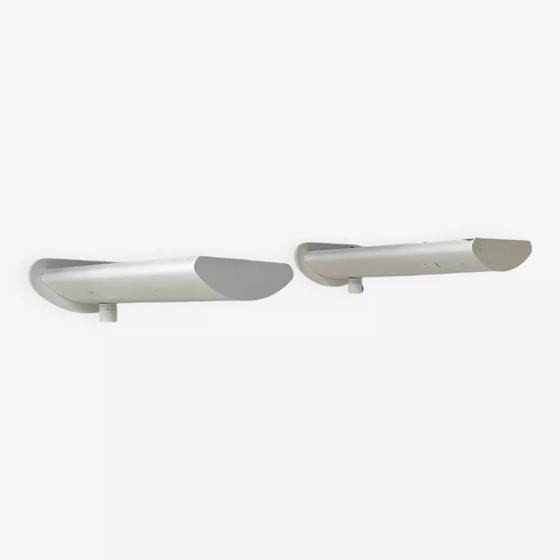 Paar dimbare wandlampen in wit gelakt metaal geproduceerd in Frankrijk in de jaren 70. Slank en elegant. Geschikt voor halogeen-leds, klaar voor installatie.
