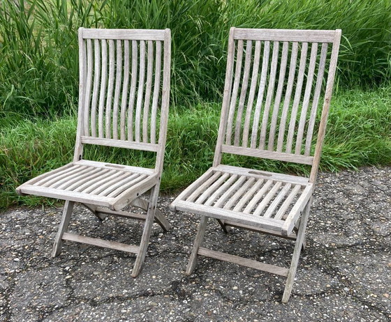 Deze twee Gloster tuinstoelen zijn inklapbaar en van een zeer goede kwaliteit teak. Tijdloos design. U kunt de stoelen ook het hele jaar door buiten laten staan.