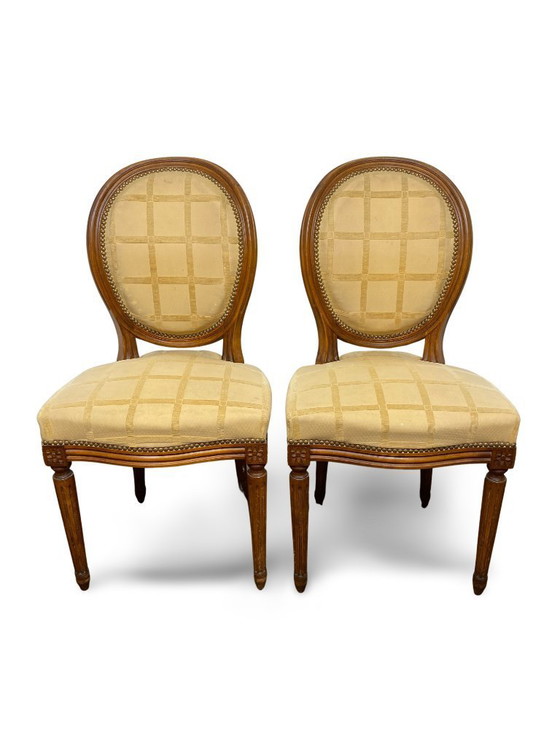 2x Louis XVI Medaillon Stoelen - XIXe eeuw - Crème/honingkleur