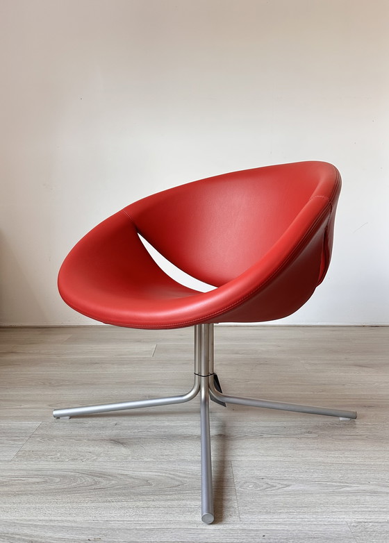 Te koop: 2 Italiaanse Maxdesign So Happy Lounge fauteuils, ontwerp Marco Maran. Rood leer, nette staat, niet draaibaar. Afmetingen: B74 × H71 × D69 cm, zithoogte 38 cm. Vraagprijs is 995 euro voor de 2.