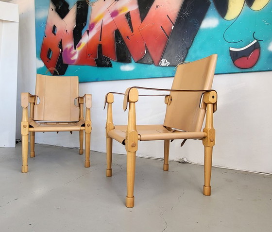 Demontabele fauteuil, uitgevoerd in beuken en naturel tuigleer (Cat.95 - 0703)