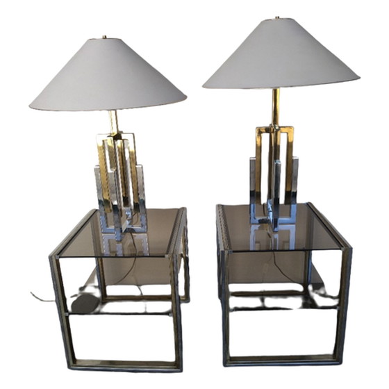 Prachtige jaren 1970 Regency designlampen van messing/chroom.