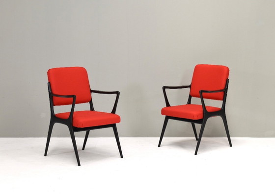 Deze zeldzame en elegante S5 fauteuils zijn ontworpen door Alfred Hendrickx, een van de meest vooraanstaande Belgische modernisten van na de Tweede Wereldoorlog, voor fabrikant Belform. Het S5-ontwerp weerspiegelt de strakke verfijning en sculpturale experimenten die kenmerkend zijn voor Hendrickx' werk.