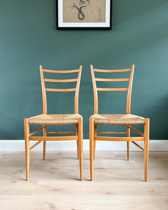Deze set van twee Spinetto Chiavari eetkamerstoelen is een prachtig voorbeeld van Mid Century Modern design. Gemaakt in Italië, deze stoelen combineren elegantie met functionaliteit. De houten frames zijn stevig en duurzaam, terwijl de rieten zittingen comfort en stijl bieden. Perfect voor elke eetkamer die een vleugje vintage charme nodig heeft.