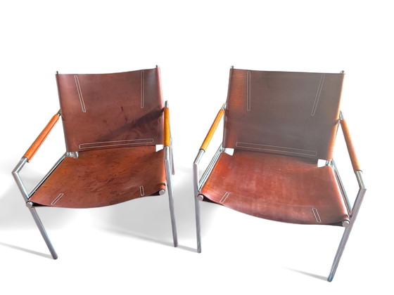 Prachtige set van twee vintage SZ02 fauteuils ontworpen door Martin Visser voor ’t Spectrum - 1970's. De stoelen zijn 60 cm breed, 65 cm diep en 71 cm hoog. De zithoogte van de fauteuils is 36 cm.