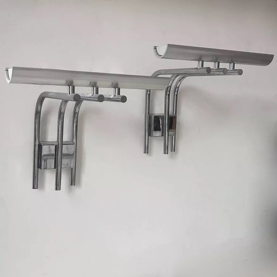 2X Vintage Lumière Studio Glazen Wandlamp, Verchroomd Metaal, Frankrijk 1970