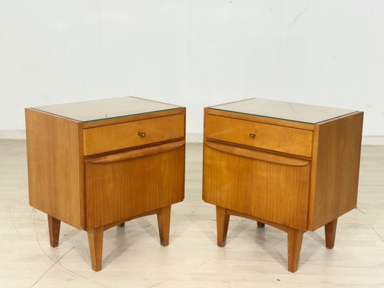 2x Zeer mooie vintage nachtkastjes, bijzettafels, nachtkastjes Hellerau