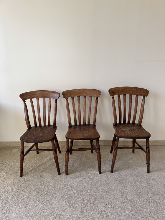 Breng een vleugje klassieke Engelse charme in huis met deze drie antieke stoelen. Perfect om een vintage sfeer te creëren in uw eetkamer of woonkamer. Deze stoelen zijn niet zomaar zitplaatsen, maar een stukje geschiedenis. Stel u ze eens voor aan uw tafel, elk met zijn eigen verhaal over gezellige bijeenkomsten uit het verleden.