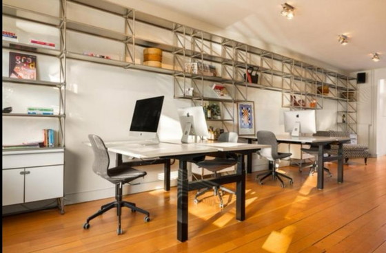3 x 2 zit/sta bureaus projectinrichting merk Wini - mooi design - als nieuw compleet met kabelgoten. De tafels zijn onderling verstelbaar, krachtige motor en stevig onderstel. Tafels staan in Amsterdam. Per duowerkplek (2 bureaus) € 400,-