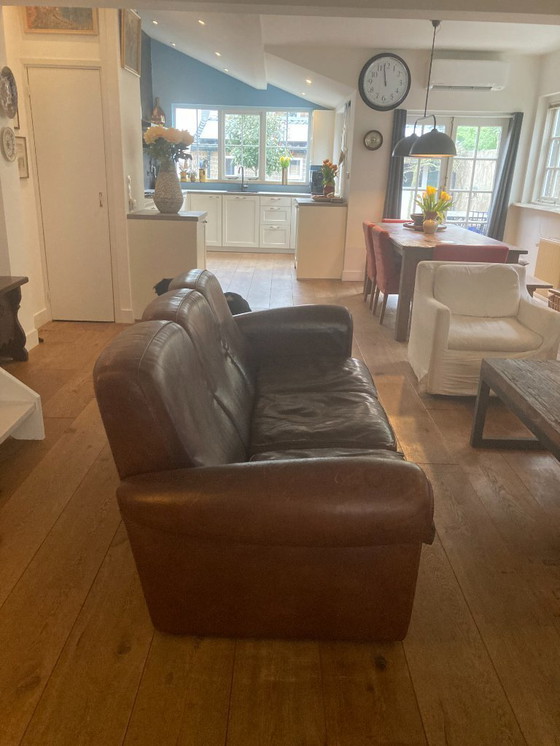 Deze stijlvolle Baxter driezitsbank is een echte blikvanger in je woonkamer. Met zijn rijke bruine leren bekleding en vintage uitstraling, voegt hij een vleugje elegantie toe aan elke ruimte.