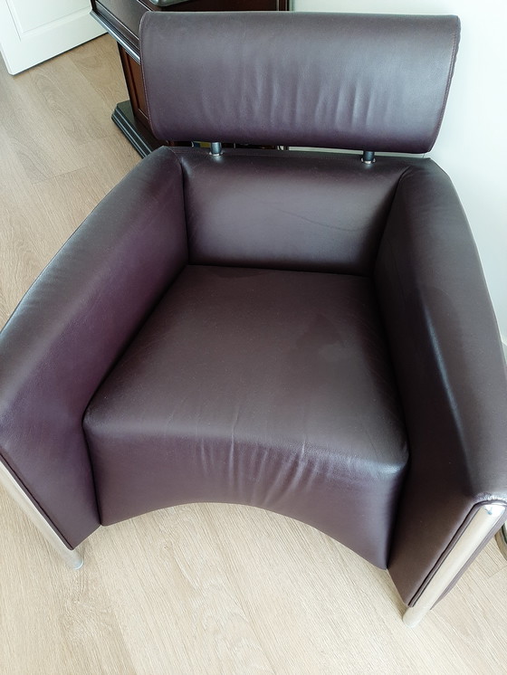 Ervaar ultiem comfort met deze set van drie OBLOMOV fauteuils en een bijpassende voetenbank. Deze moderne stoelen zijn bekleed met luxe aubergine leer en hebben een strak metalen frame, wat zorgt voor een eigentijdse uitstraling die perfect past in elk interieur. Dit type is netwerken door Braun en Meniatis en behoort inmiddels tot de iconen van de Leolux collectie. Het leer is regelmatig onderhouden met een onderhoudsmiddel van Leolux. De Fauteuils zijn dan ook vrij van krassen, vlekken en absoluut schadevrij.