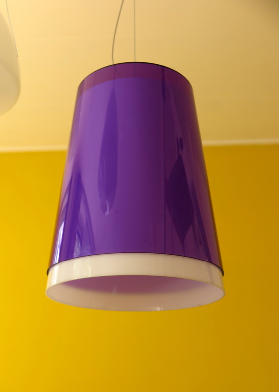3x Pedrali hanglamp, violet, dubbele kap van hoogwaardig polycarbonaat (model L001S/AA).
