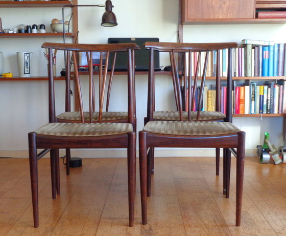 Een set van vier palissander eetkamerstoelen uit de jaren 50 tot 60.