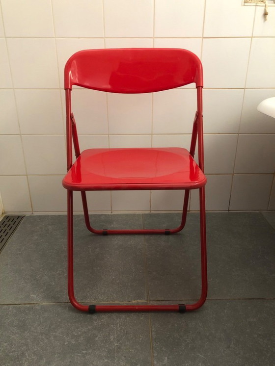 Set van 4 rode klapstoelen, ideaal voor extra zitplaatsen bij evenementen of in huis. Deze stoelen zijn gemaakt van stevig metaal en bieden zowel duurzaamheid als stijl. Dankzij het opvouwbare ontwerp zijn ze gemakkelijk op te bergen wanneer ze niet in gebruik zijn. Voeg een vleugje kleur toe aan je ruimte met deze praktische en moderne stoelen.
