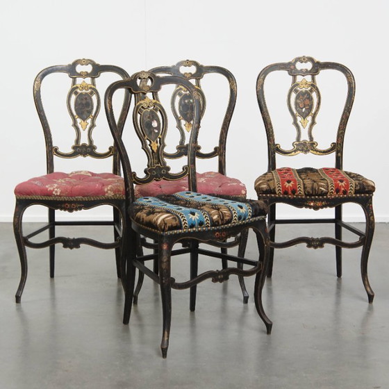 4 x Antiek Frans Napoleon 3 stoeltje ingelegd met parelmoer