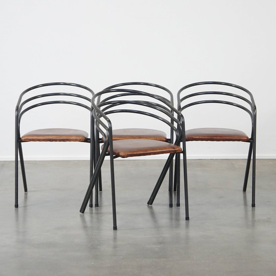 4 X Design Eetkamerstoel Met Leren Zitting En Metalen Frame