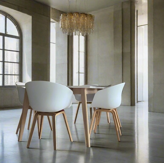 HAY About a Chair AAC22 - De Perfecte Design Eetkamerstoel De HAY About a Chair AAC22 is zonder twijfel een van de meest iconische modellen uit de populaire About a Chair collectie van HAY. Ontworpen door de Deense designer Hee Welling, combineert deze stoel strak, minimalistisch design met ultiem comfort. Door zijn veelzijdige uitstraling past de AAC22 kuipstoel moeiteloos in verschillende interieurstijlen, van modern tot klassiek. Deze eetkamerstoel heeft een stijlvolle polypropyleen kuip, die zorgt voor een comfortabele zitervaring, of je nu lange diners hebt of geconcentreerde vergaderingen in een conferentieruimte. Het onderstel is vervaardigd uit duurzaam eikenhout, wat niet alleen een natuurlijke en warme uitstraling biedt, maar ook stabiliteit en kwaliteit garandeert. De AAC22 is perfect voor gebruik in eetkamers, lunchruimtes of zelfs vergaderzalen. Dankzij het tijdloze design en de functionaliteit is het een echte blikvanger in elke ruimte. Of je nu stoelen zoekt voor thuis of een professionele omgeving, de HAY About a Chair AAC22 biedt het beste van beide werelden: design en comfort. Met 29 stuks beschikbaar, is dit de ideale kans om je interieur een stijlvolle upgrade te geven met deze veelzijdige en comfortabele designstoelen van HAY! Comfortabele designstoel met afmetingen van H 79 x B 59 x D 52 cm Voorzien van een stevig onderstel van gezeept eikenhout Zeer comfortabel met een zithoogte van 46 cm Perfect voor zowel de eetkamer als het kantoor Geniet van het prachtige design van Hee Welling Ontwerper: Hee Welling Fabrikant: HAY Model: AAC22 Materiaal: gezeept eikenhout, polypropyleen Afmetingen: Hoogte: 79 cm Breedte: 59 cm Diepte: 52 cm Zithoogte: 46 cm Staat: Zeer goed, kleine deuken en krassen door normaal gebruik.