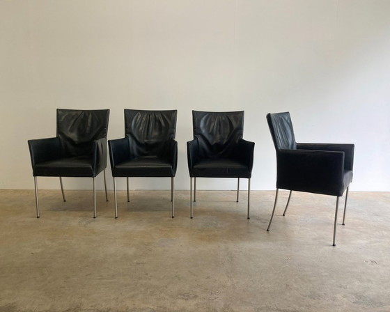 De Arc eetkamerstoel is een ontwerp uit 2002 van Hans Daalder voor het Nederlandse meubelmerk Bert Plantagie. Echt lederen bekleding. Deze stoel staat bekend om zijn tijdloze design en hoogwaardige kwaliteit. De Arc eetkamerstoel heeft een elegant gebogen rugleuning die zorgt voor een comfortabele zitervaring. Een opvallend kenmerk van deze stoel is dat hij is uitgerust met wieltjes, wat het gemakkelijk maakt om de stoel te verplaatsen zonder deze op te tillen. Bert Plantagie staat bekend om moderne ontwerpen en vakmanschap, en de Arc eetkamerstoel is daar al jaren een uitstekend voorbeeld van.