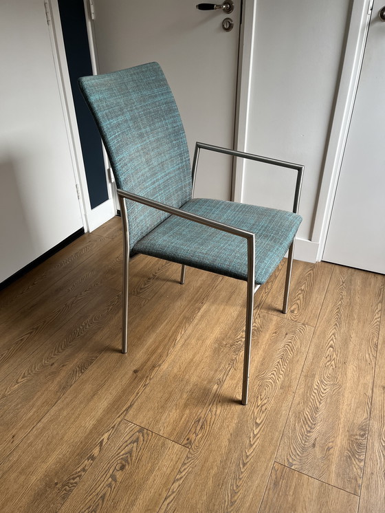 4 moderne eetkamerstoelen van het Deens merk Skovby, bekend om zijn uitstekende zitcomfort en stabiliteit, in zeer goede staat.