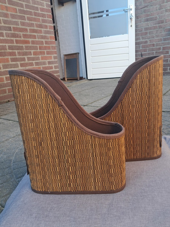 Breng een vleugje natuurlijke charme naar je werkplek met deze set van vier Ikea MOTORP opbergmanden uit 1999. Gemaakt van duurzaam palmblad, bieden deze manden een vintage uitstraling die perfect past bij elke interieurstijl. Ideaal voor het organiseren van papieren, pennen en andere bureau-accessoires, deze manden voegen zowel functionaliteit als esthetiek toe aan je bureau. De warme bruine tinten zorgen voor een gezellige sfeer, waardoor je werkruimte direct uitnodigender wordt. Grijp deze kans om je bureau een stijlvolle opfrisbeurt te geven!