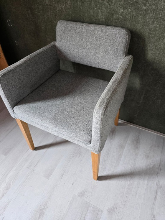 4x Sateliet eetkamerstoel met armleuning – grijs / houten poten