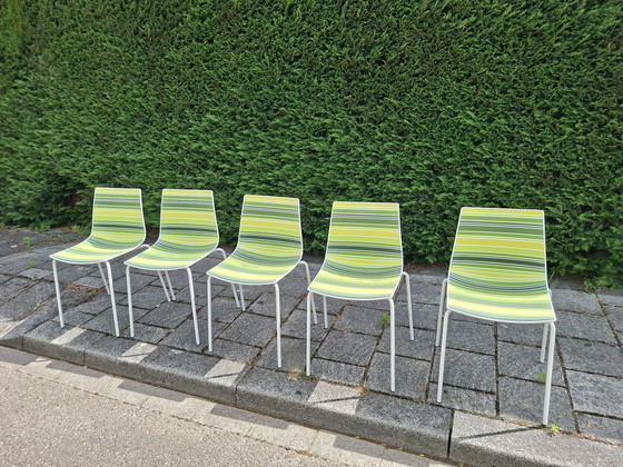 Fijne design (red dot) stoelen. Zo goed als nieuw. Italiaans design. Stapelbaar. Nieuwprijs 375 euro per stuk. Voor binnen- en buitengebruik.